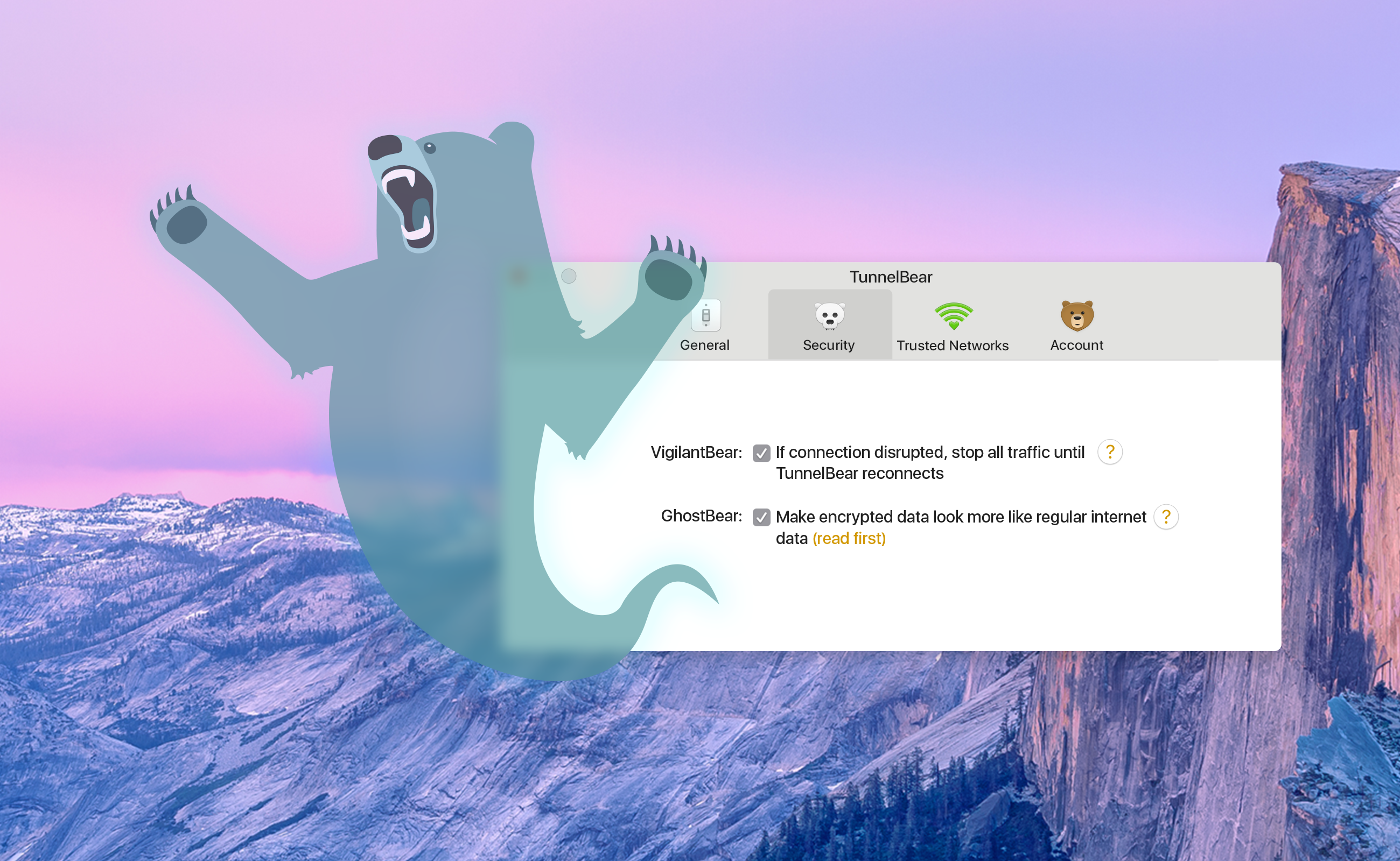 In our ongoing effort to stay transparent and open, we’d like to explain an often misunderstood feature of TunnelBear VPN. If you look in the “Preferences” drop-down of your TunnelBear app, you’ll find a checkbox that turns GhostBear on and off. This feature helps disguise your encrypted data by making it “look more like regular internet data”. It’s still encrypted, but if someone decides to take a closer look at your data, it'll be harder for them to see that you're using a VPN to encrypt your traffic.